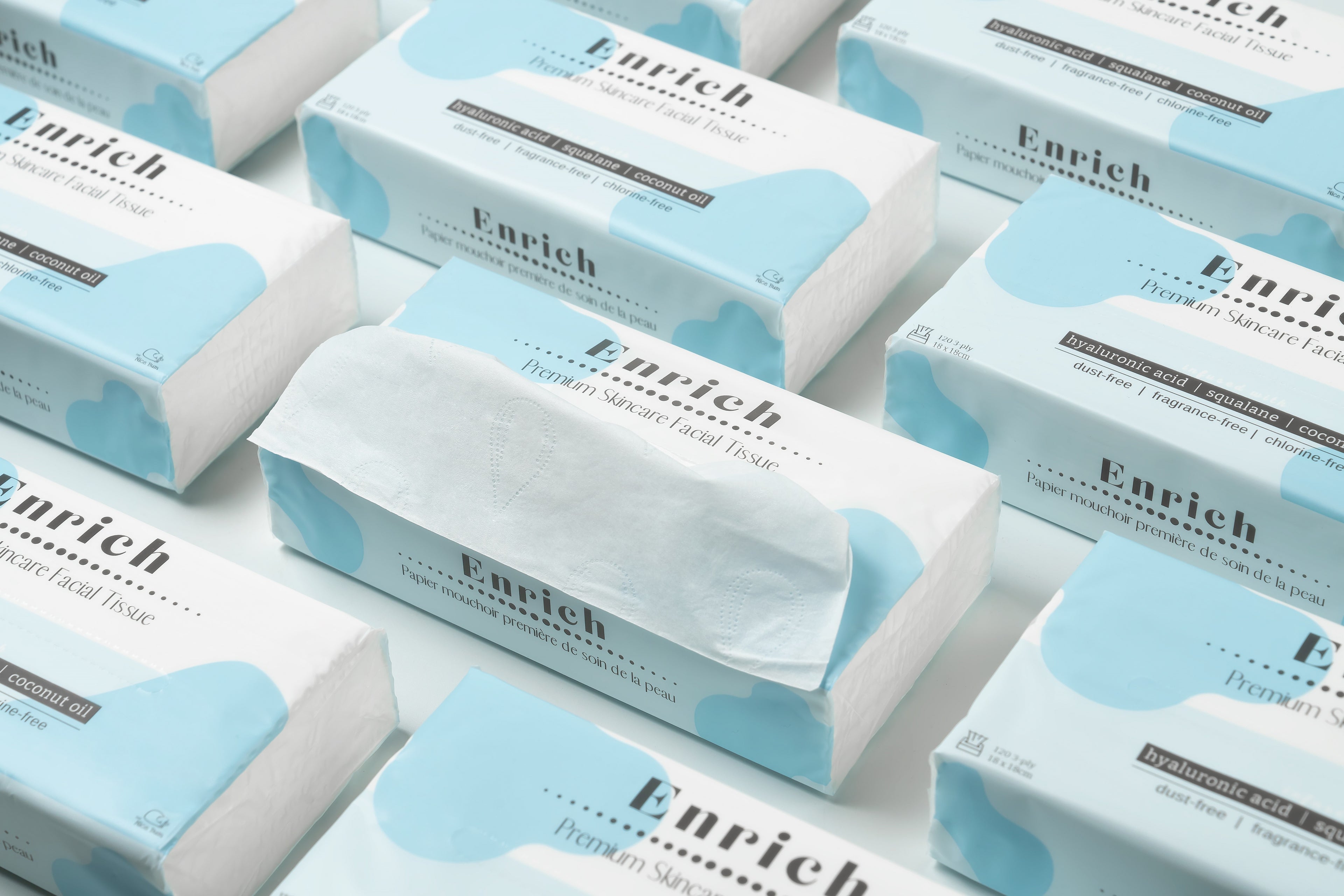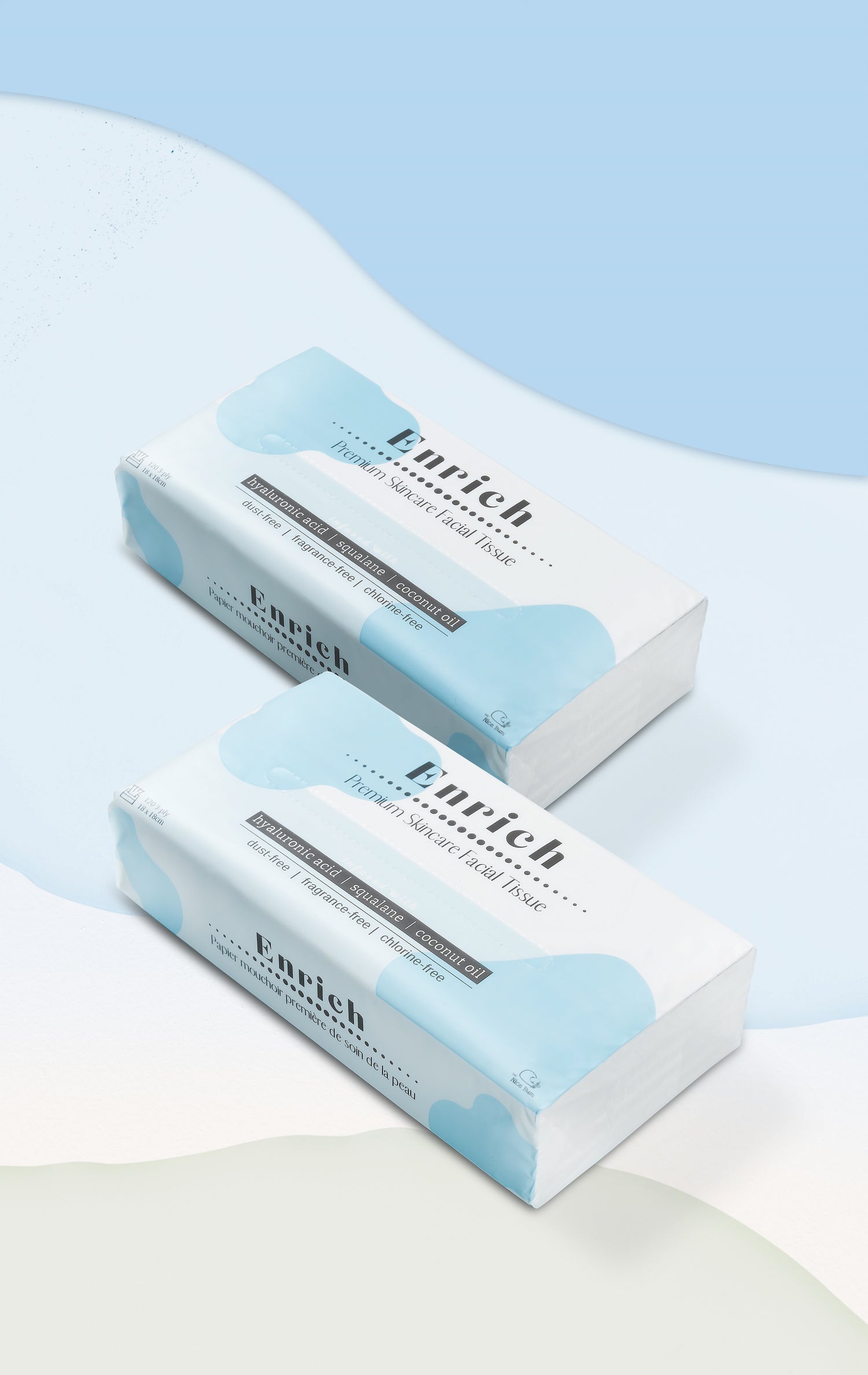 Enrich is not your average tissue found in bulk stores. We take tissue quality to the next level by crafting it from premium plant fibers and infusing it with luxurious ingredients. Creating such exceptional tissues is no simple task; it demands meticulous procedures, extended manufacturing time, and the use of only the finest materials.