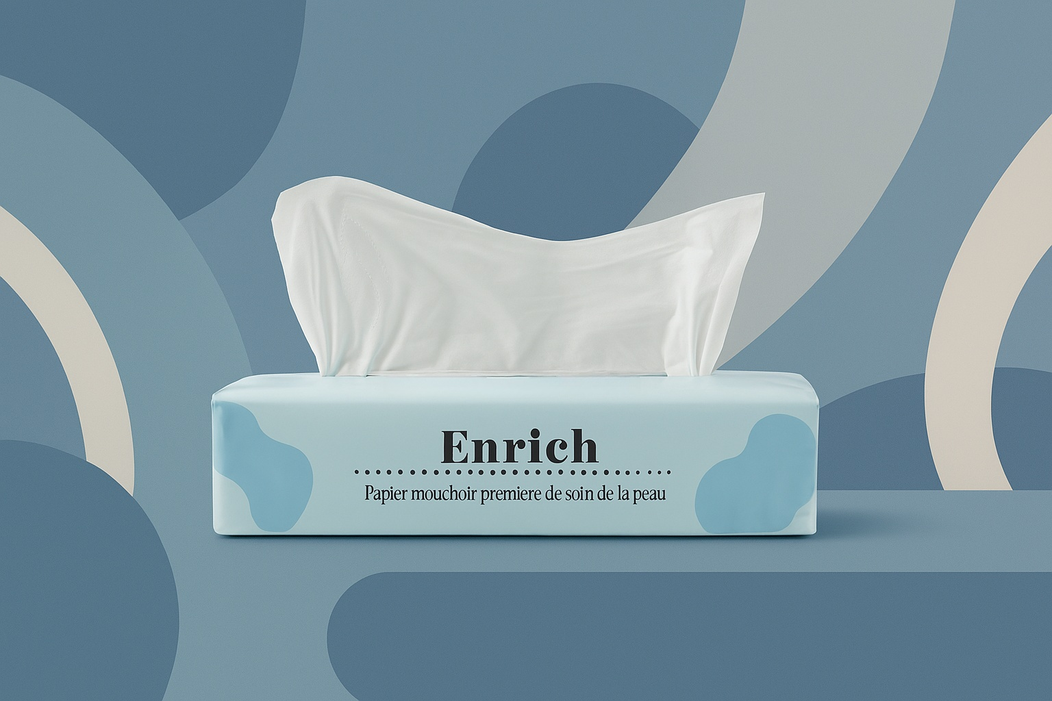Our secret recipe guarantees that each Enrich tissue is exceptionally gentle on your skin. When you touch it, you'll immediately notice a refreshing, comfortable, and slightly moisturizing sensation. We believe that even the simplest moments can be elevated, and Enrich tissues are designed to do just that.